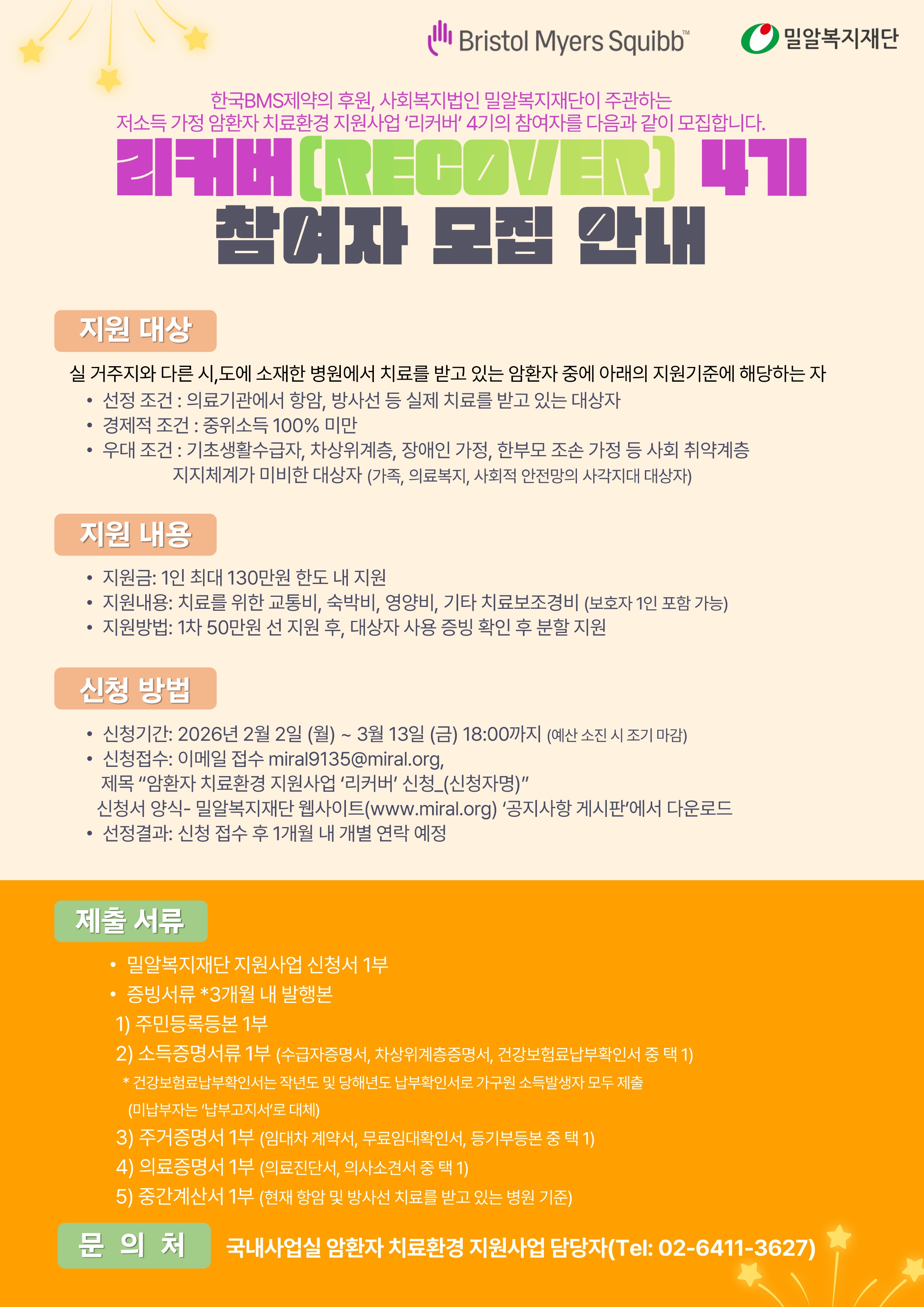 한국BMS제약과 함께하는 암환자 치료환경 지원사업 리커버 4기 대상자 모집