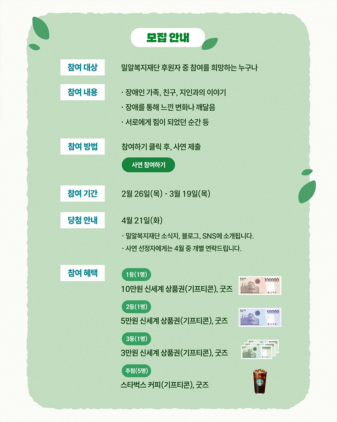 장애인과 함께한 후원자님의 소중한 이야기를 모집합니다.