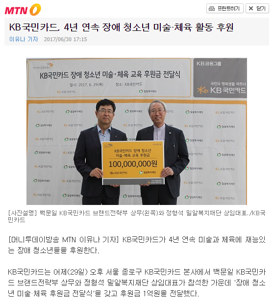 [머니투데이방송] KB국민카드, 4년 연속 장애 청소년 미술·체육 활동 후원