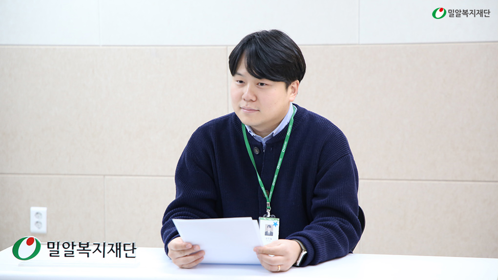 안녕하세요. 밀알복지재단 경영지원본부 인재경영실 교육문화팀 김진일 간사입니다. 저는 밀알복지재단에서 HRD(인적자원개발, Human Resources Development) 업무를 맡고 있습니다. 직원들이 밀알 안에서 즐겁고 행복하게 일하는 조직문화를 만들고, 개인의 역량과 리더십을 증진시킬 수 있는 다양한 교육 프로그램을 기획하고 운영하고 있어요. ‘밀알복지재단 직원들이 행복할 때, 우리가 지원하는 대상자 분들도 행복하다’는 마음으로, 직원분들이 가진 재능과 열정을 끌어낼 수 있도록 일하고 있습니다.