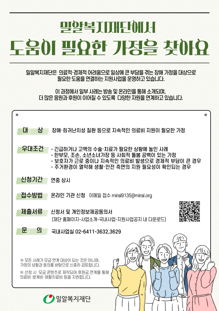 [상시모집] 밀알복지재단에서 도움이 필요한 가정을 찾아요