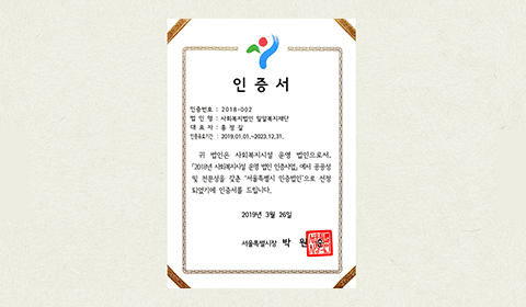 2018년 사회복지시설 운영 법인 인증사업 '서울특별시 인증법인' 선정