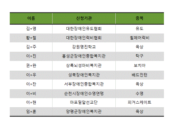 이번 장애청소년 운동선수 지원사업 대상자는 지난 5월부터 신청 및 심사를 통해 10명을 선정하였습니다.