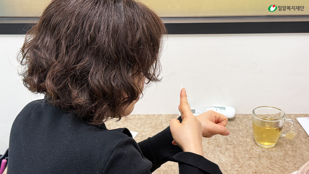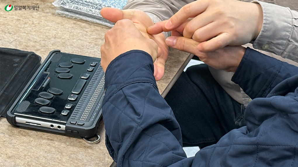 촉수화를 통해 소통하는 교육생들