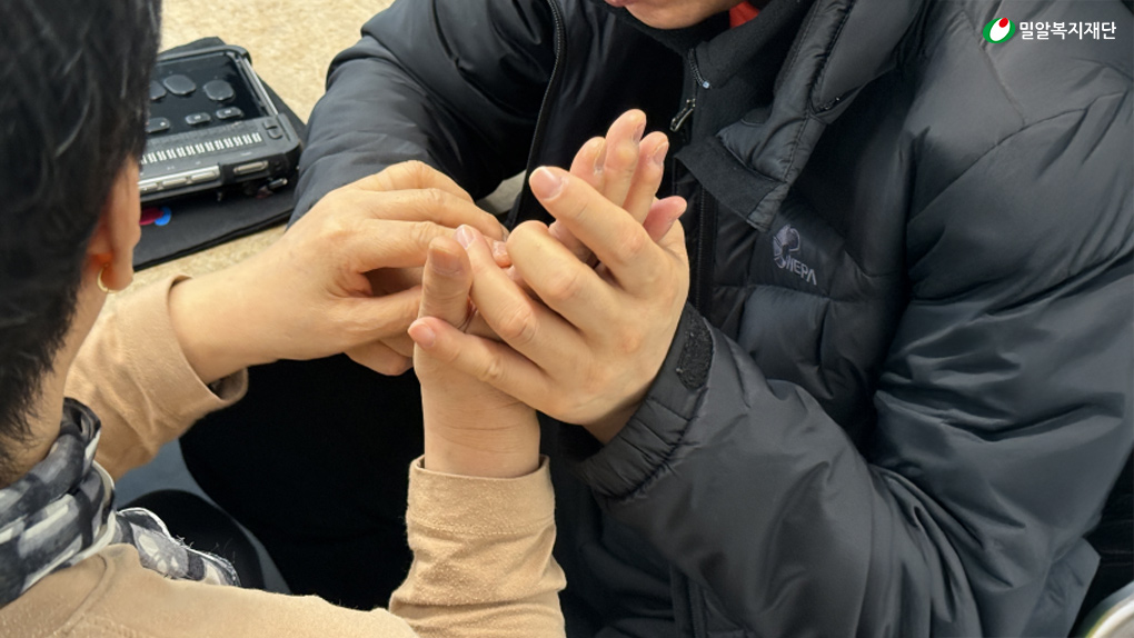 촉수화는 상대방의 손 위에 손을 얹어