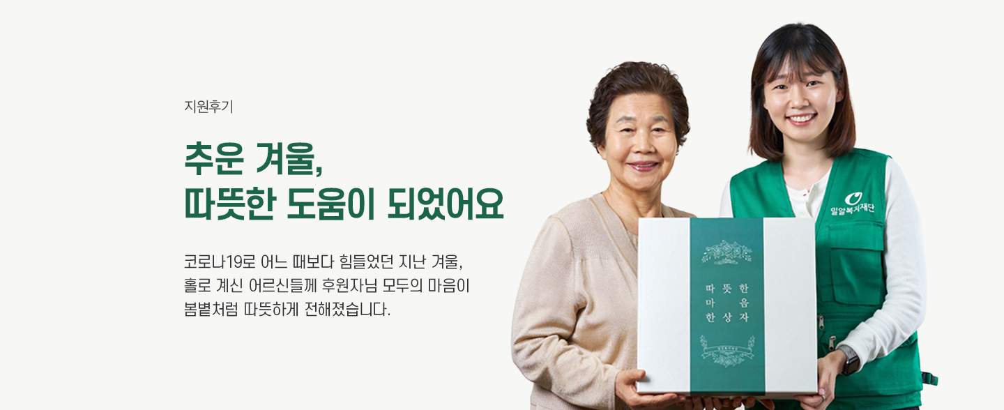 매년 찾아오는 겨울이지만 독거 어르신들께 지난겨울은 유난히도 쓸쓸했습니다. 코로나19 위기가 3년간 이어지면서 이야기 나누는 이 하나 없이 더욱 외로운 하루하루를 보내야 했기 때문입니다. 밀알복지재단은 독거 어르신들이 몸도 마음도 모두 따스한 겨울을 보내실 수 있도록 캠페인을 진행했습니다.
