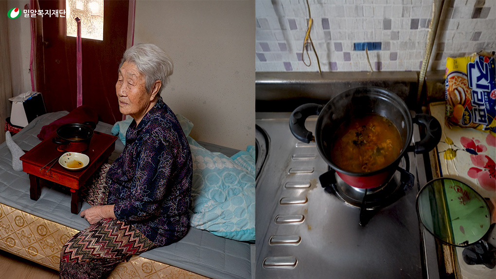 라면 반 개로 한끼 식사를 준비하시는 할머니