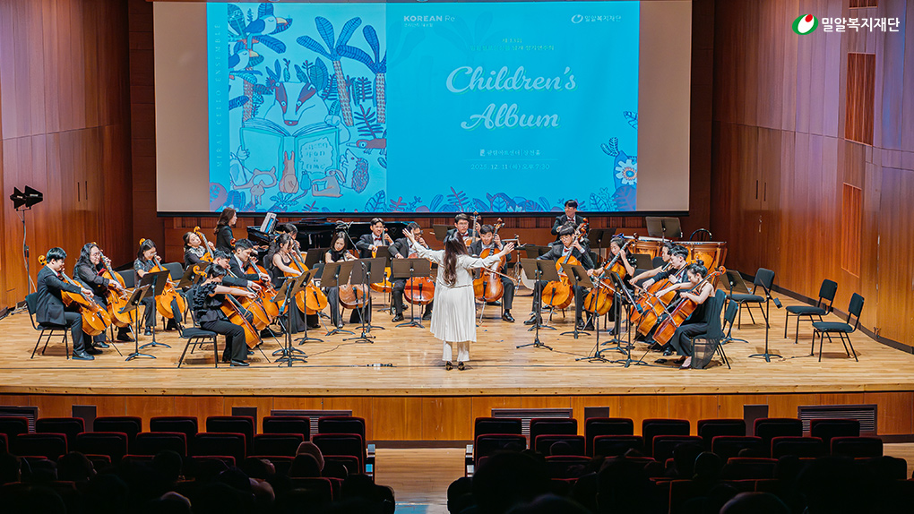 지난 2025년 12월 11일(목) 오후 7시 30분, 서울 강남구 광림아트센터 장천홀에서 코리안리재보험이 후원하고 밀알복지재단이 운영하는 발달장애 아동·청소년 첼로앙상블 ‘날개’의 제13회 정기연주회가 성황리에 개최되었습니다.